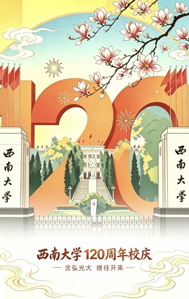 为共祝西南大学120周年校庆、学院办学85周年,研究生第四党支部举办“百廿弦歌 八五薪火”AI海报设计大赛。本次大赛以“百廿弦歌不辍 八五载薪火相传”为主题,以人工智能技术为创作载体,引导青年学子将学校、学院文化精神与数字创意手段深度融合,传承“含弘光大 继往开来”的校训精神和“数通古今 学究天人”的院训精神。