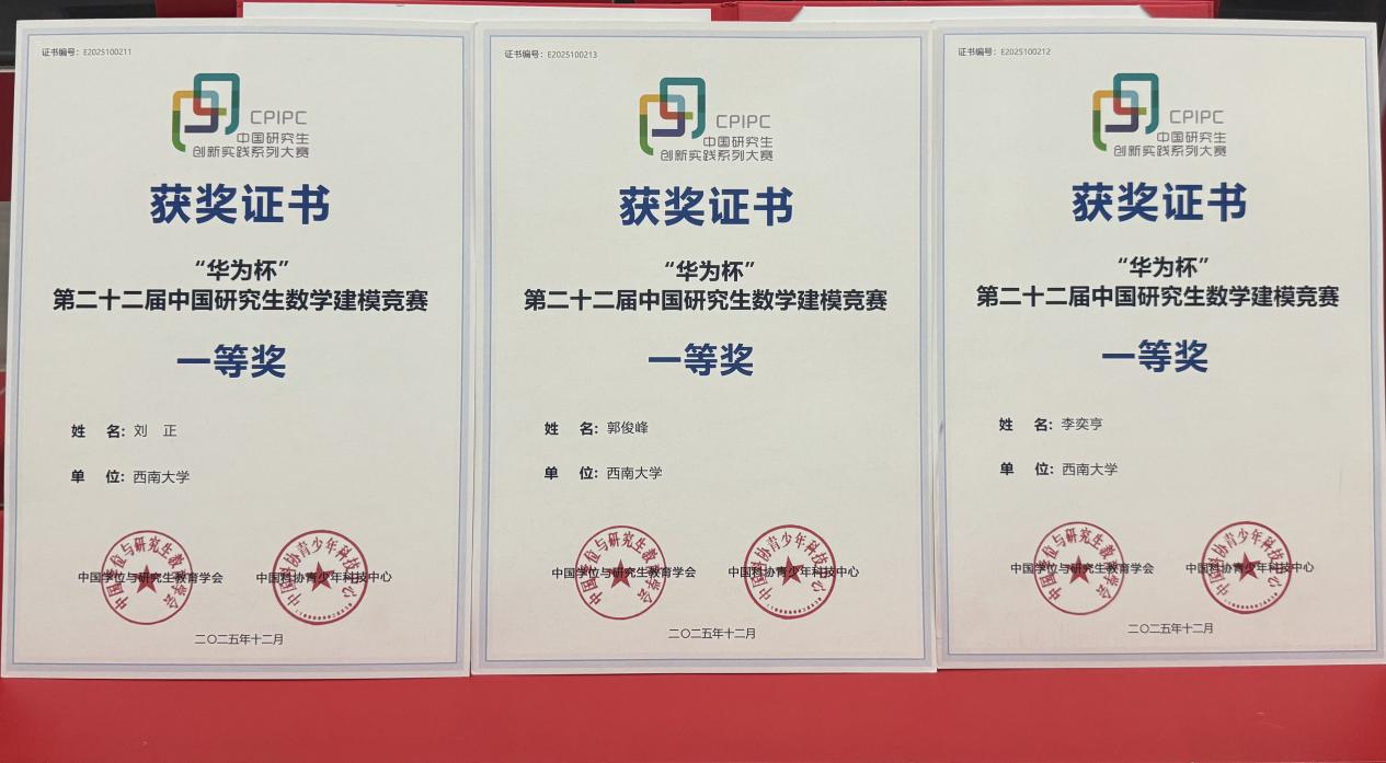 近日,“华为杯”第二十二届中国研究生数学建模竞赛获奖名单正式揭晓。学院学子刘正、郭俊峰、李奕亨斩获全国一等奖,实现历史性突破。