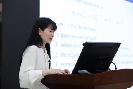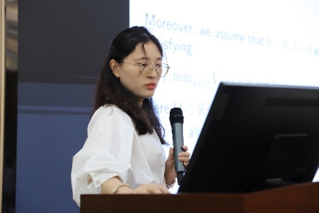 汇报环节,10 位博士、硕士研究生依次登台做交流汇报。同学们首先向母校 120 周年校庆、学院办学 85 周年送上诚挚祝福,随后围绕各自研究成果进行学术汇报,内容覆盖基础数学、应用数学、统计学等多个前沿领域,既包含三维磁流体动力学方程、偏微分方程解的性质等基础理论研究,也涵盖张量补全、谱CT重建等统计学应用创新,以及生态数学模型等交叉方向探索,展示出了较为扎实的学术功底与创新思维。汇报过程中,评委老师们积极提问,与同学们深入研讨交流,现场学术氛围浓厚,充分彰显了学院优良的学术传承与科研风貌。